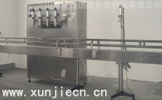 該灌裝機為半自動灌裝線,雙速灌裝控制技術,直線式灌裝,防滴漏灌裝閥,機身不銹鋼制造,主要用于各種瓶裝液體等液位灌裝。